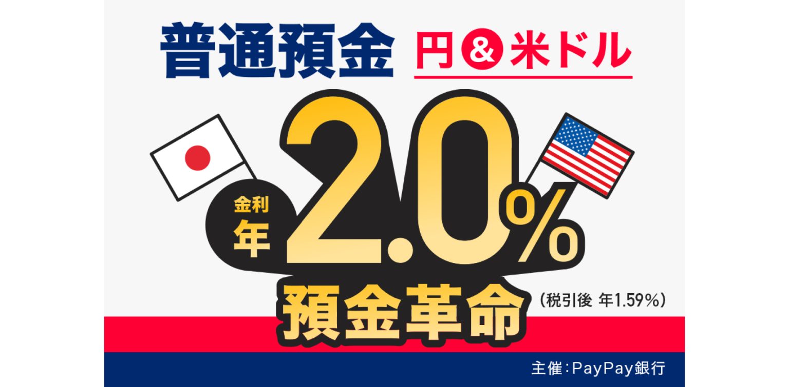 PayPay銀行、円と米ドル普通預金の両方に預け入れで金利 年2.0%の定常プログラム「預金革命」を開始!