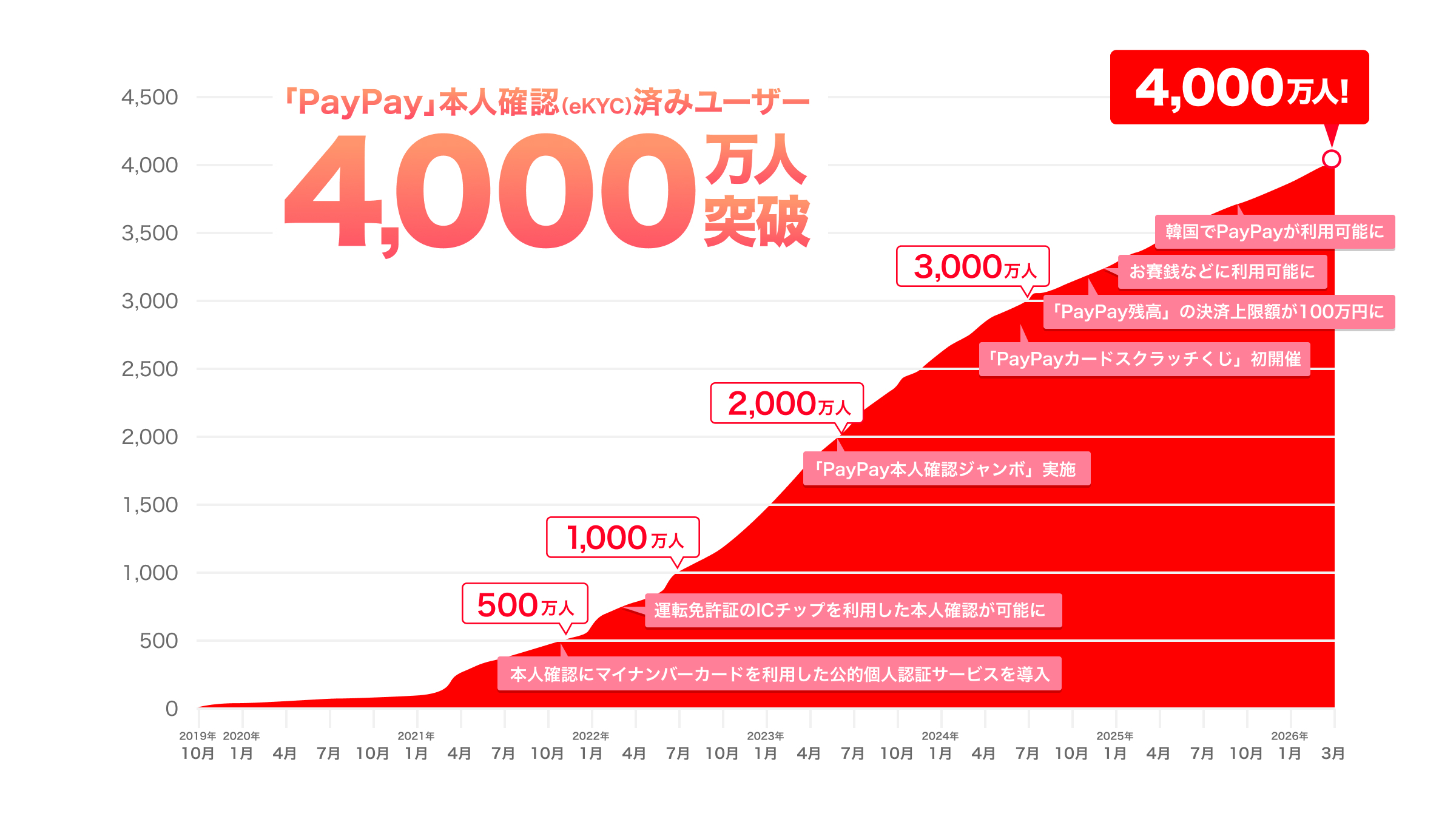 「PayPay」の本人確認(eKYC)済みユーザーが4,000万を突破!